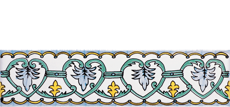 Ogni listello 6,5x26 prevede un relativo decoro ad angolo realizzato nel formato 6,5x6,5. Il formato 6,5x26 viene solitamente utilizzato per un inserimento nel rivestimento. Un suo eventuale utilizzo come terminale dovrebbe prevederne la costa superiore smaltata.In tal caso è opportuno farne esplicita richiesta.