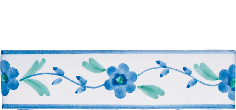 Ogni listello 5x20 prevede un relativo decoro ad angolo realizzato nel formato 5x5. Il formato 5x20 viene solitamante utilizzato per un inserimento nel rivestimento. Un suo eventuale utilizzo come terminale dovrebbe prevederne la costa superiore smaltata. In tal caso e' opportuno farne esplicita richiesta. Oltre quelli proposti e' possibile la realizzazione di altri decori.